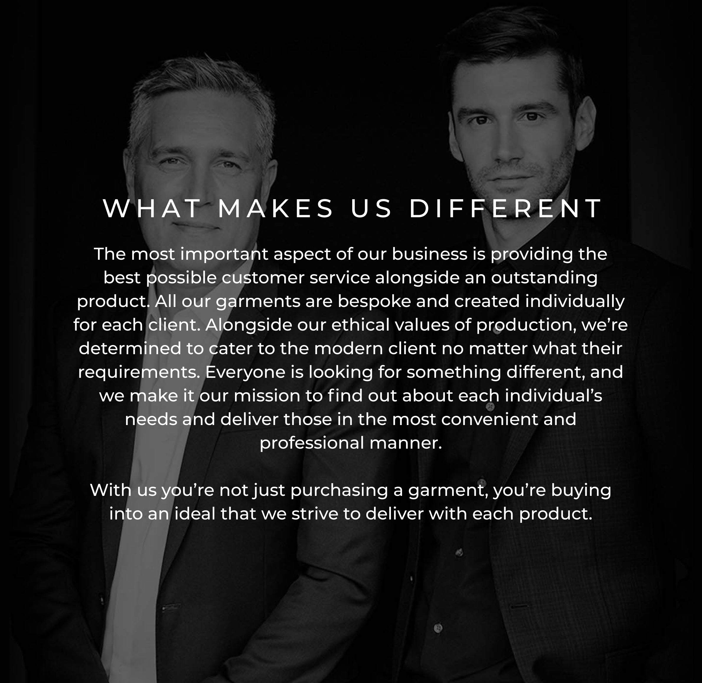 We provide the time, care and authenticity needed to enhance and realize your style and personality. It starts with a one-on-one consultation for fabrics and fit, with an experience that is tailored around your needs and expectations.